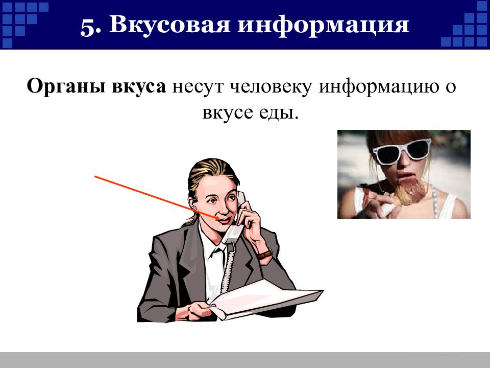 Слайд 10: 5. Вкусовая информация