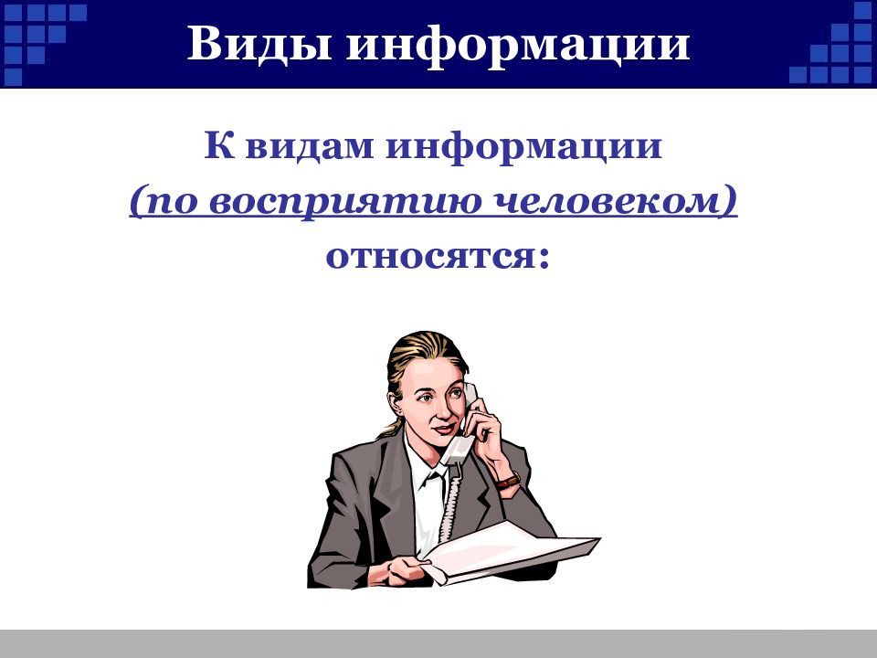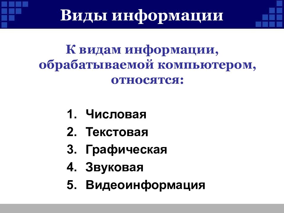 Слайд 11: Виды информации