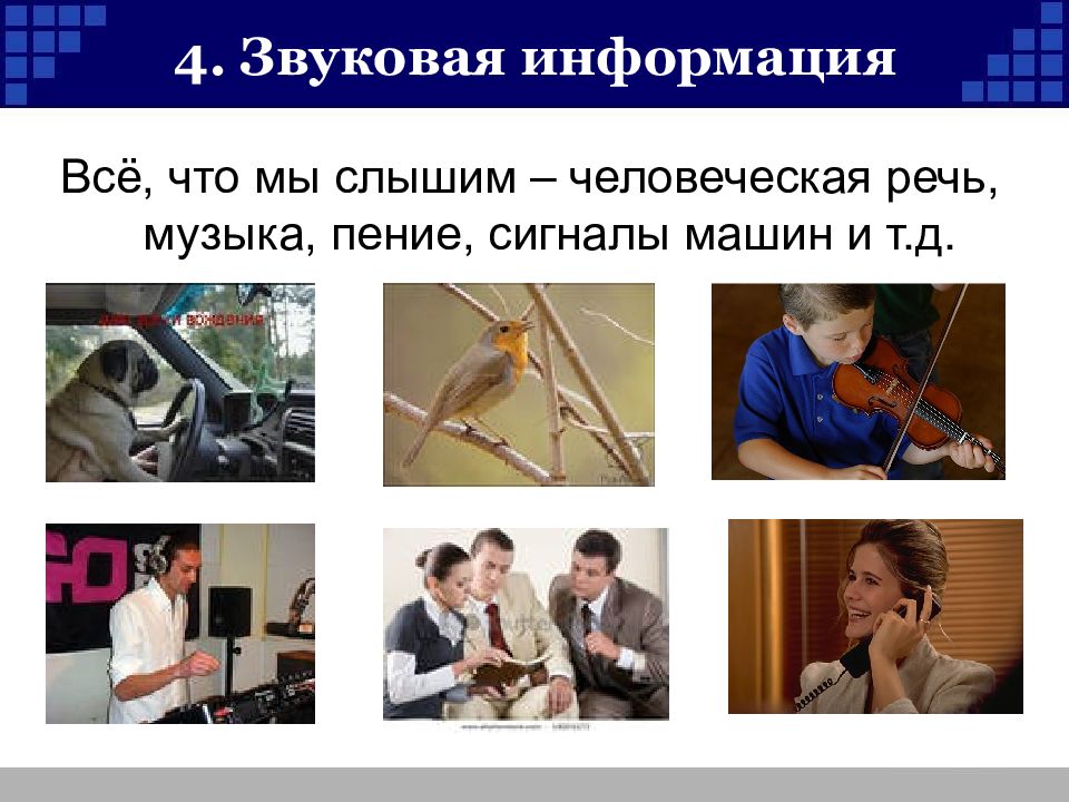 Слайд 15: 4. Звуковая информация