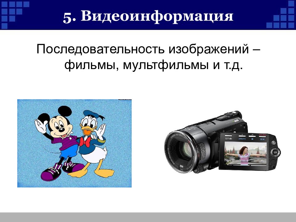 Слайд 16: 5. Видеоинформация