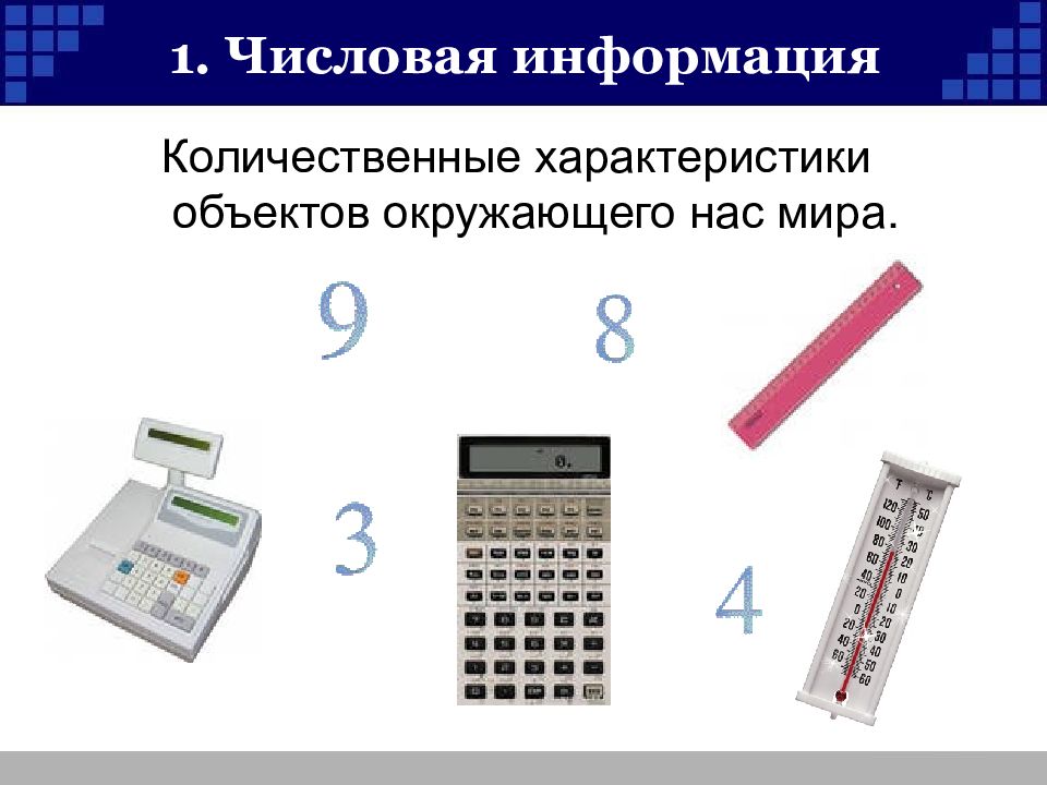 Слайд 12: 1. Числовая информация
