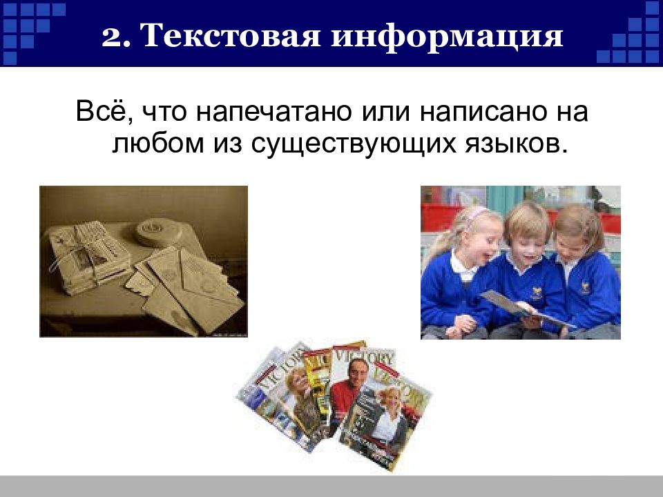 Слайд 13: 2. Текстовая информация