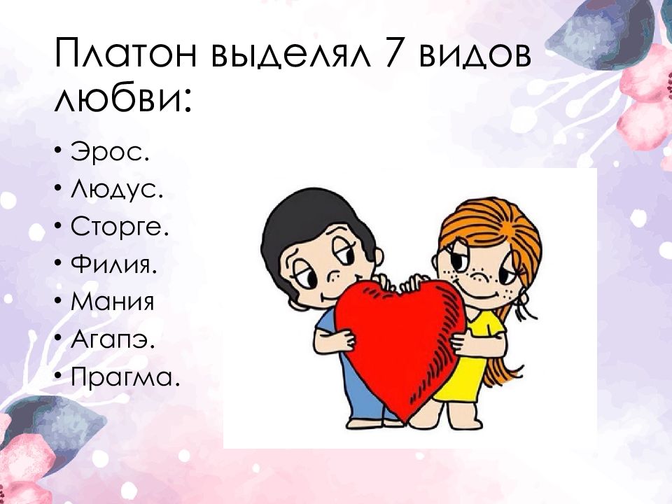Эрос. Людус. Сторге. Филия. Мания Агапэ. Прагма.