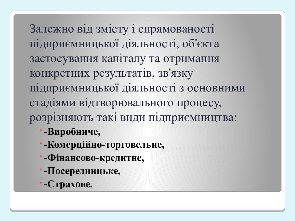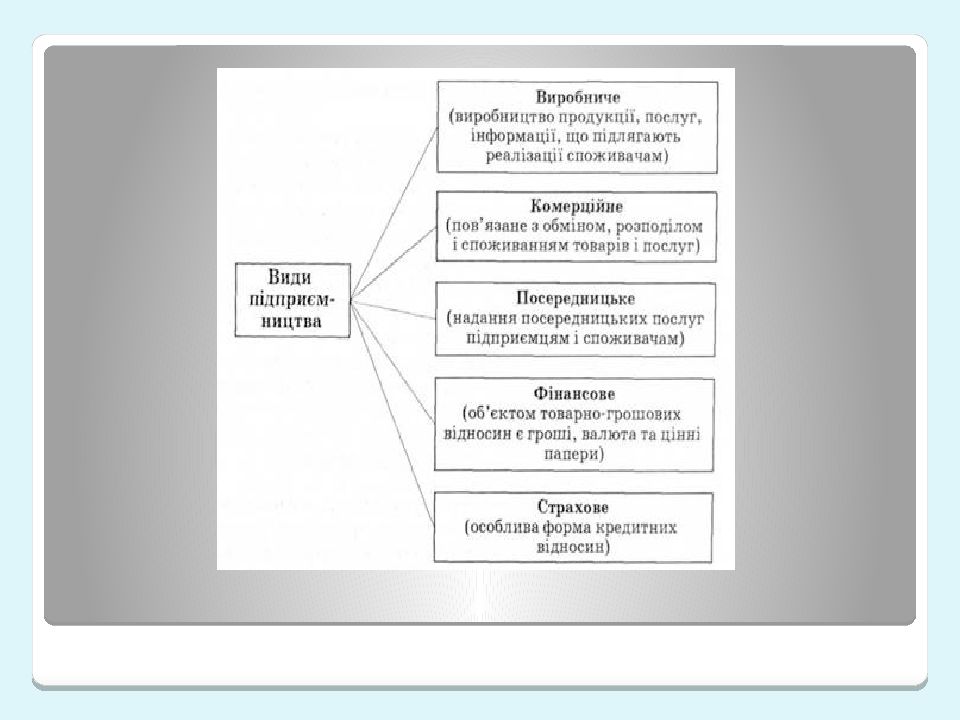 Последний слайд презентации: Види підприємництва: виробниче, комерційне, посередницьке, фінансове