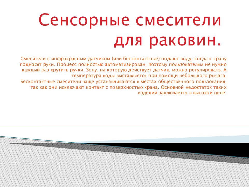 Слайд 10: Сенсорные смесители для раковин