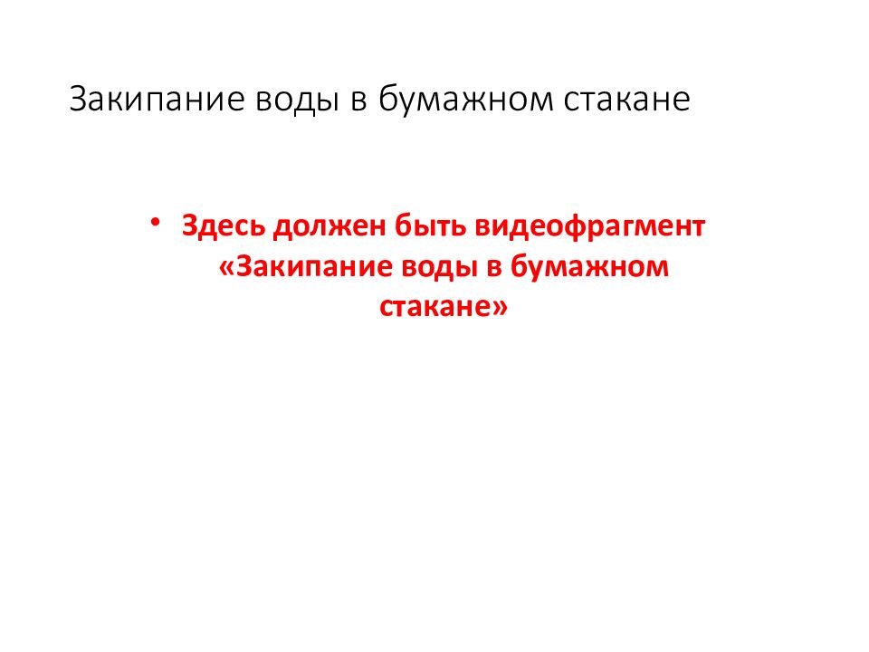 Здесь должен быть видеофрагмент «Закипание воды в бумажном стакане»