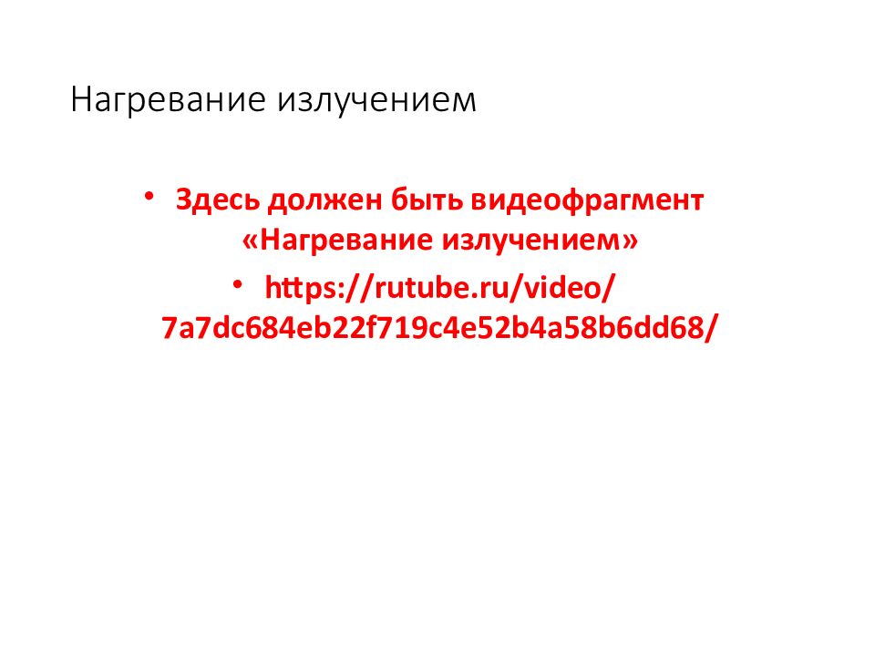 Здесь должен быть видеофрагмент «Нагревание излучением» https:// rutube.ru /video/7a7dc684eb22f719c4e52b4a58b6dd68/