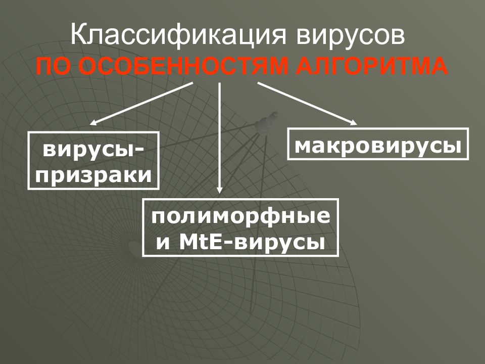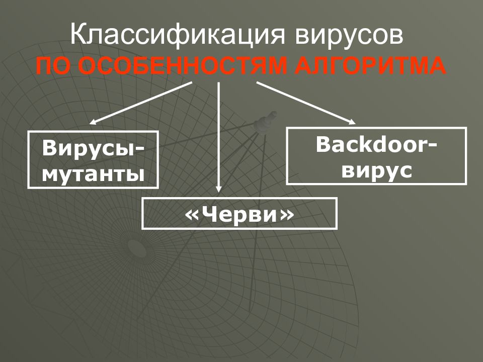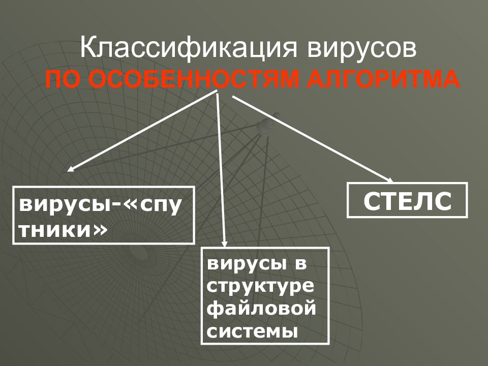 Слайд 4: Классификация вирусов ПО ОСОБЕННОСТЯМ АЛГОРИТМА