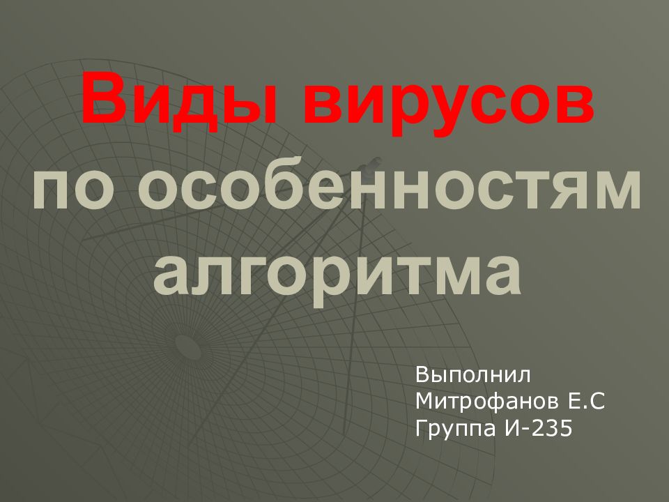 Первый слайд презентации: Виды вирусов по особенностям алгоритма