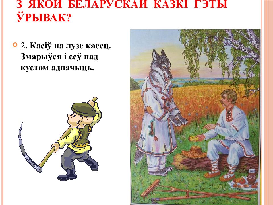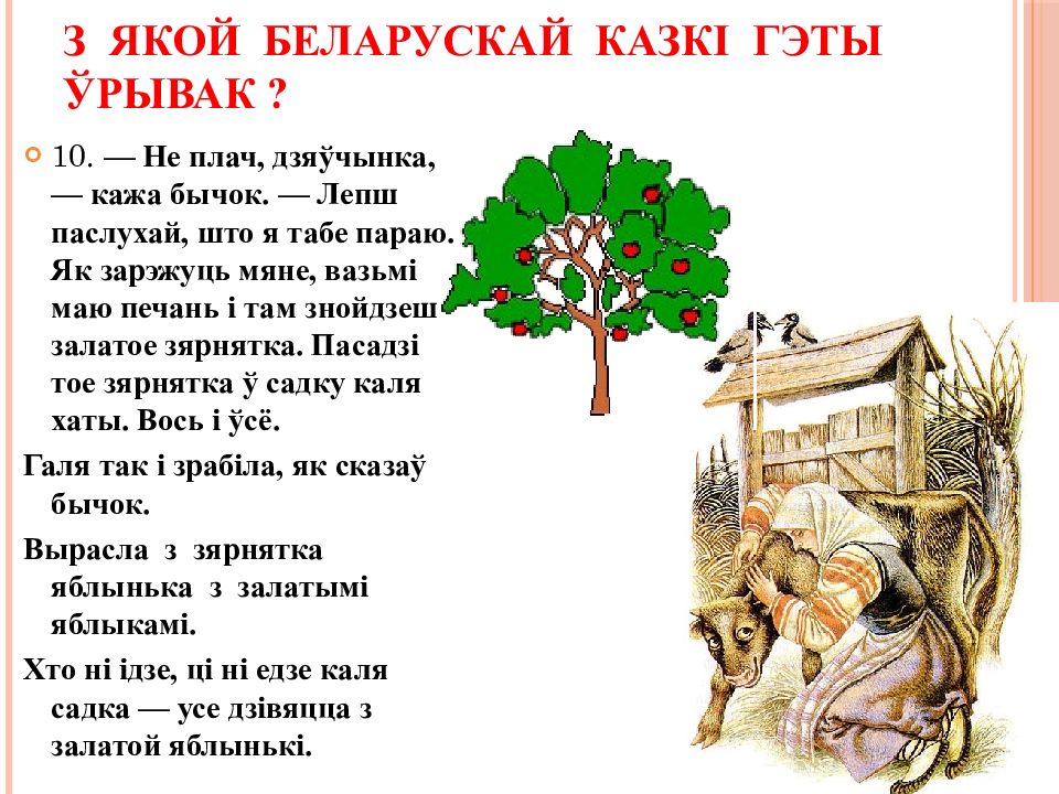 Слайд 10: З якой беларускай казкі гэты ўрывак ?