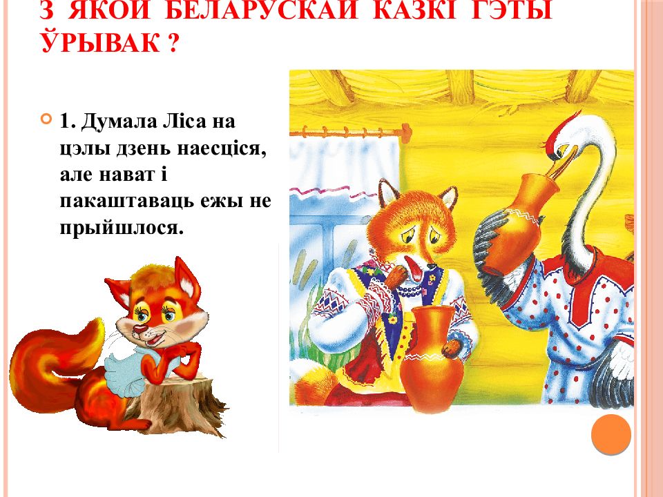 1. Думала Ліса на цэлы дзень наесціся, але нават і пакаштаваць ежы не прыйшлося.