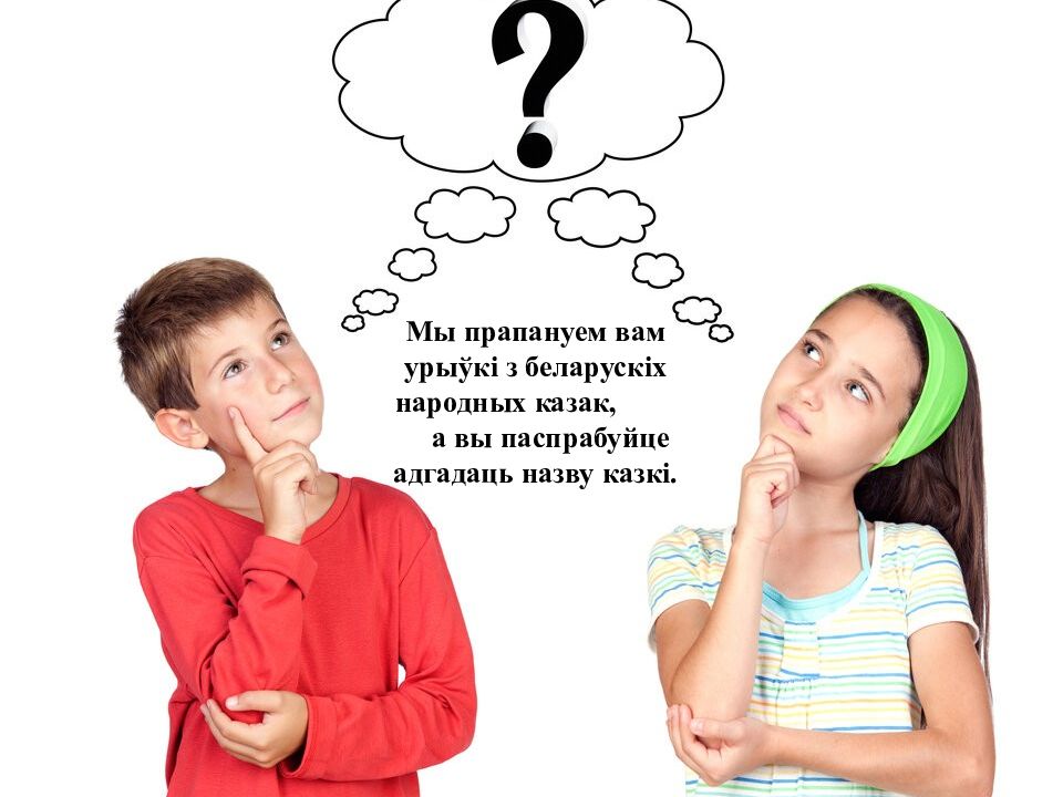 Мы прапануем вам урыўкі з беларускіх народных казак, а вы паспрабуйце адгадаць назву казкі.
