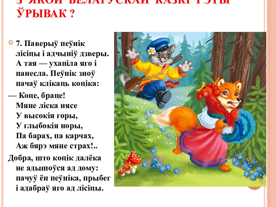 Слайд 7: З якой беларускай казкі гэты ўрывак ?
