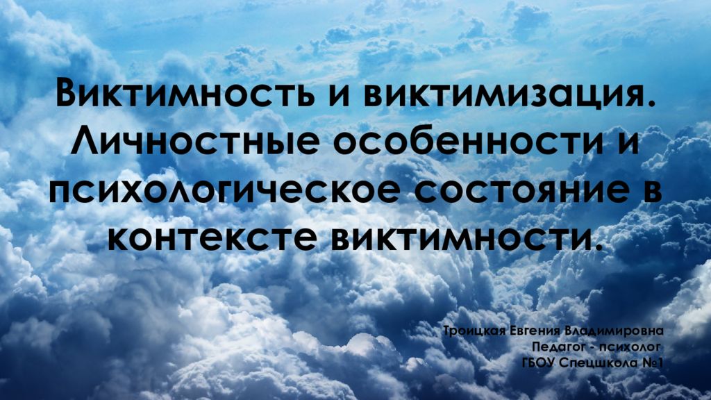 Виктимность и виктимизация. Личностные особенности и психологическое состояние в контексте виктимности. Троицкая Евгения Владимировна Педагог - психолог ГБОУ Спецшкола №1