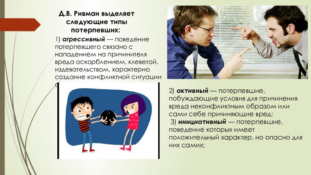 Слайд 7: Д.В. Ривман выделяет следующие типы потерпевших: