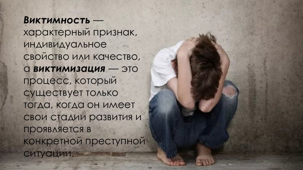 Виктимность — характерный признак, индивидуальное свойство или качество, а виктимизация — это процесс, который существует только тогда, когда он имеет свои стадии развития и проявляется в конкретной преступной ситуации.