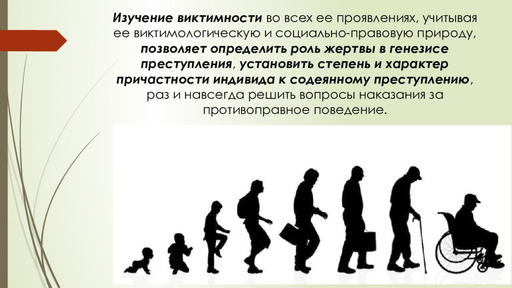Изучение виктимности во всех ее проявлениях, учитывая ее виктимологическую и социально-правовую природу, позволяет определить роль жертвы в генезисе преступления, установить степень и характер причастности индивида к содеянному преступлению, раз и навсегда решить вопросы наказания за противоправное поведение.