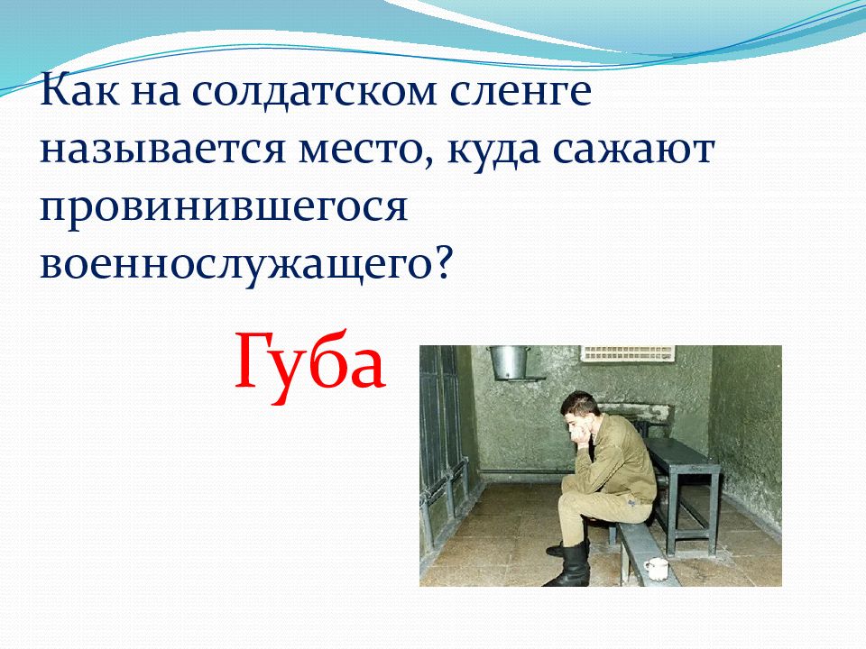 Как на солдатском сленге называется место, куда сажают провинившегося военнослужащего? Губа