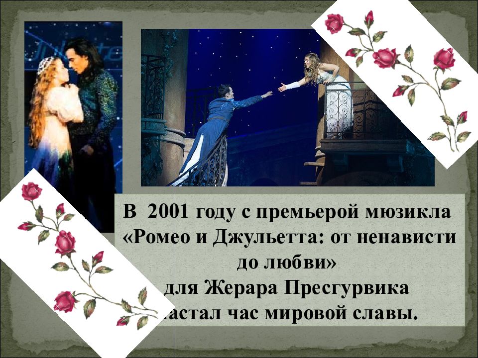 В 2001 году с премьерой мюзикла «Ромео и Джульетта: от ненависти до любви» для Жерара Пресгурвика настал час мировой славы.
