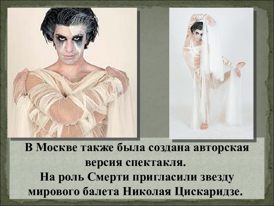 В Москве также была создана авторская версия спектакля. На роль Смерти пригласили звезду мирового балета Николая Цискаридзе.