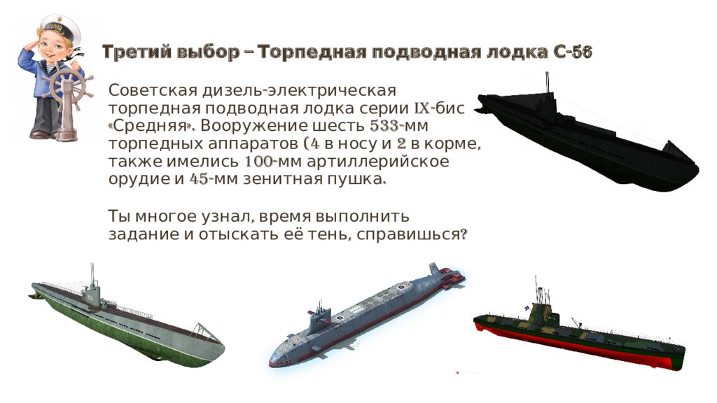 Слайд 5: Третий выбор – Торпедная подводная лодка С-56