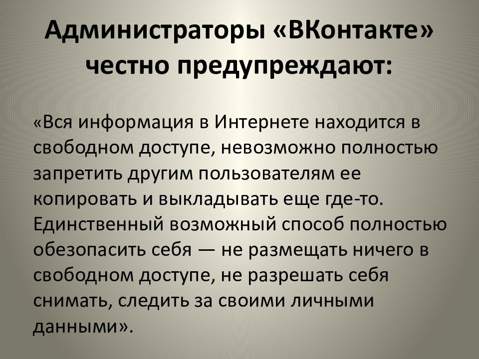 Слайд 4: Администраторы « ВКонтакте » честно предупреждают: