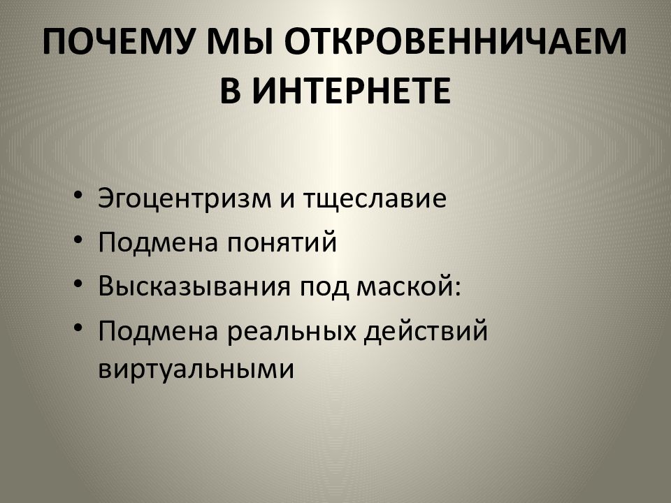 Слайд 3: ПОЧЕМУ МЫ ОТКРОВЕННИЧАЕМ В ИНТЕРНЕТЕ