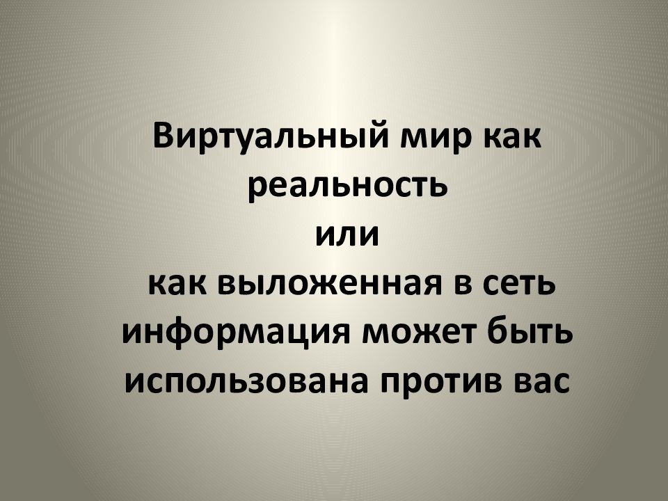 Последний слайд презентации: Виртуальный мир как реальность или как выложенная в сеть информация может быть