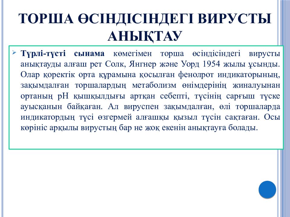Слайд 36: ВИРУСТЫ ЗАҚЫМДАЛҒАН ТОРША ӨСІНДІСІНЕН ТАБУ (ИНДИКАЦИЯЛАУ)