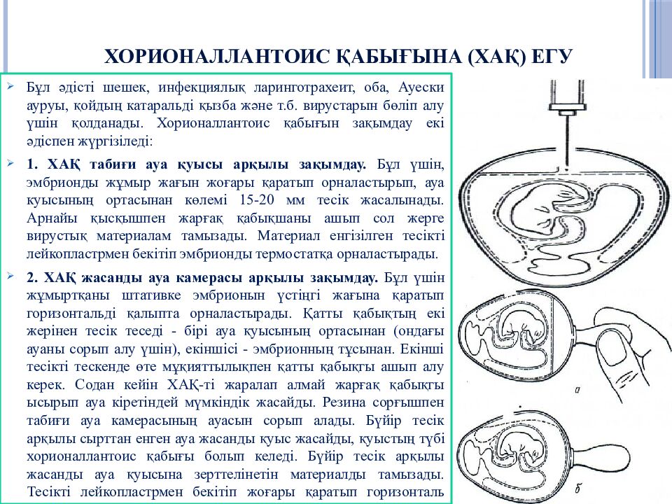 Слайд 23: Тауық эмбрионы және оны вирусологияда қолдану