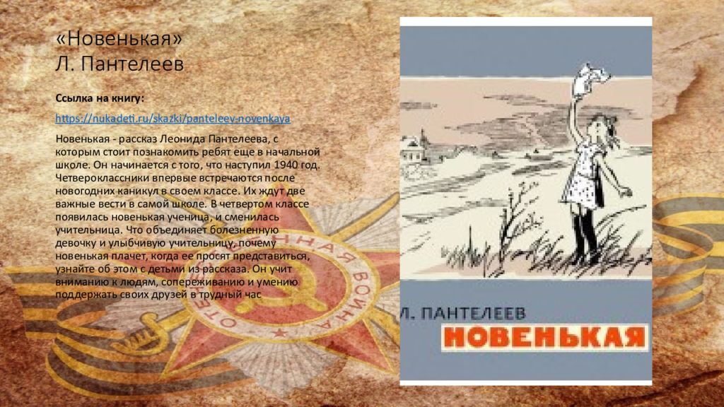 Ссылка на книгу: https://nukadeti.ru/skazki/panteleev-novenkaya Новенькая - рассказ Леонида Пантелеева, с которым стоит познакомить ребят еще в начальной школе. Он начинается с того, что наступил 1940 год. Четвероклассники впервые встречаются после новогодних каникул в своем классе. Их ждут две важные вести в самой школе. В четвертом классе появилась новенькая ученица, и сменилась учительница. Что объединяет болезненную девочку и улыбчивую учительницу, почему новенькая плачет, когда ее просят представиться, узнайте об этом с детьми из рассказа. Он учит вниманию к людям, сопереживанию и умению поддержать своих друзей в трудный час