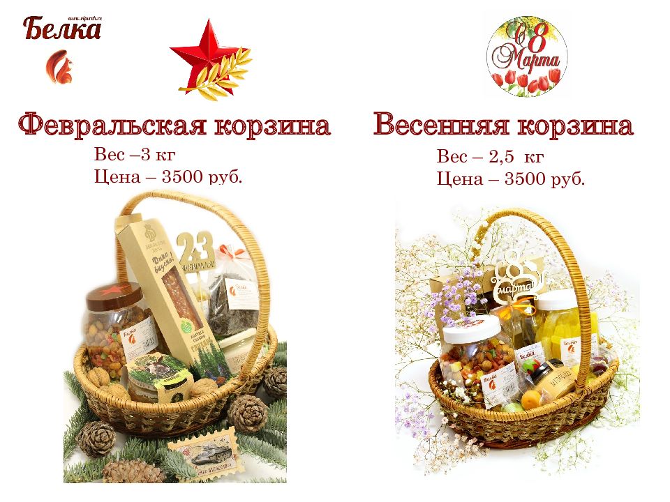 Февральская корзина Вес –3 кг Цена – 35 0 0 руб. Весенняя корзина Вес – 2,5 кг Цена – 3500 руб.