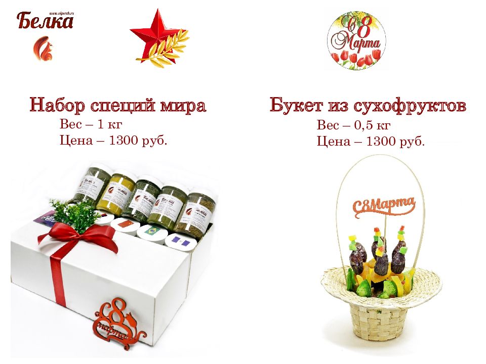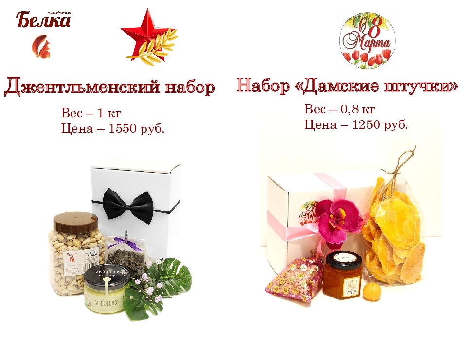 Д жентльменский набор Вес – 1 кг Цена – 1550 руб. Набор «Дамские штучки» Вес – 0,8 кг Цена – 1250 руб.