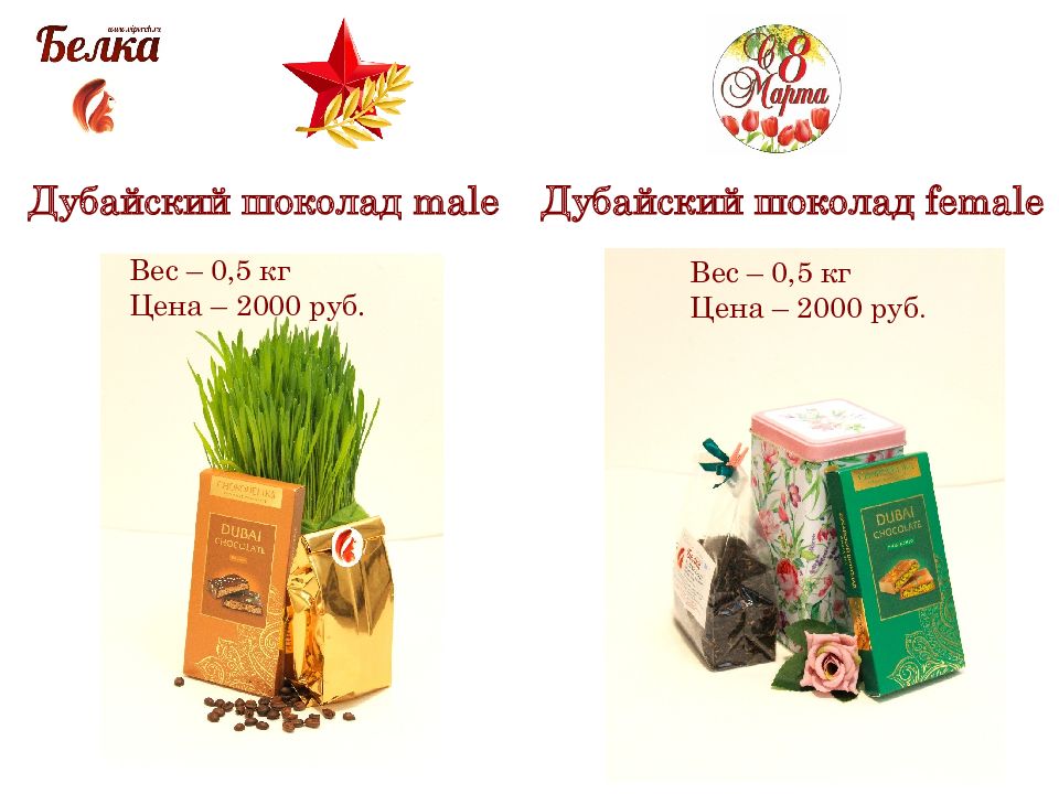 Дубайский шоколад male Дубайский шоколад female Вес – 0,5 кг Цена – 2000 руб. Вес – 0,5 кг Цена – 2000 руб.