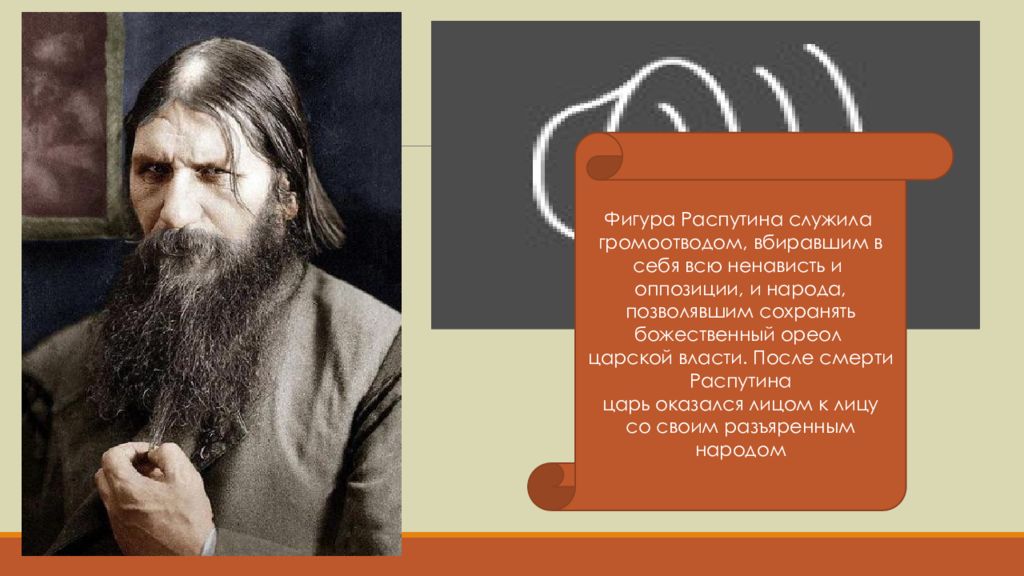 Фигура Распутина служила громоотводом, вбиравшим в себя всю ненависть и оппозиции, и народа, позволявшим сохранять божественный ореол царской власти. После смерти Распутина царь оказался лицом к лицу со своим разъяренным народом