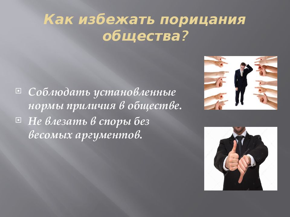 Соблюдать установленные нормы приличия в обществе. Не влезать в споры без весомых аргументов.