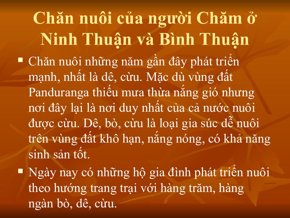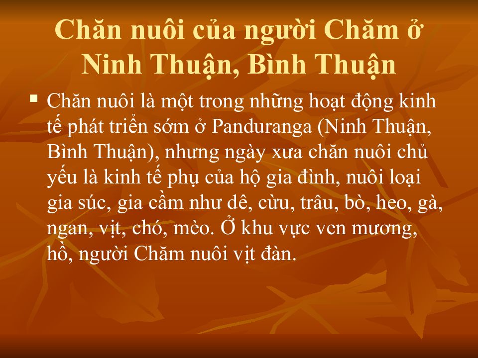 Слайд 16: Chăn nuôi của người Chăm ở Ninh Thuận và Bình Thuận