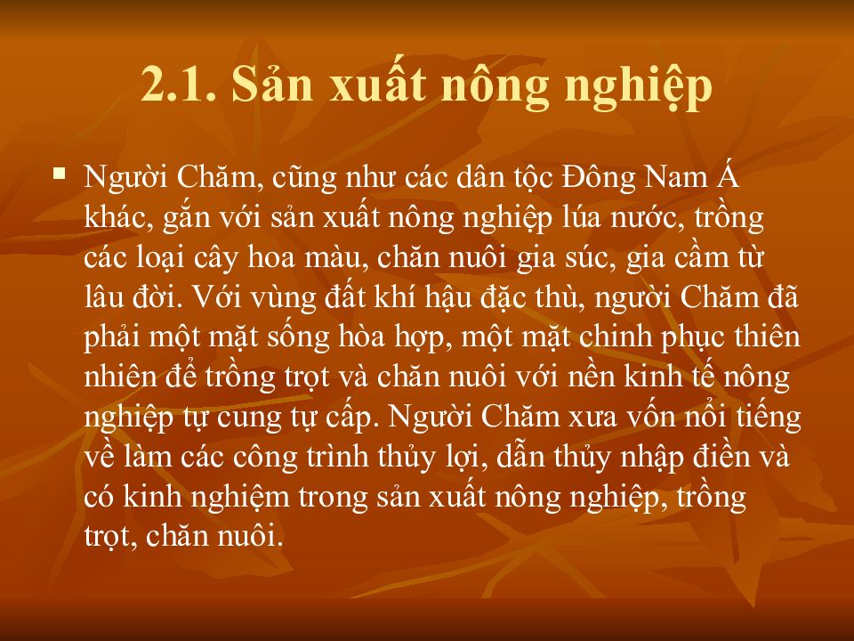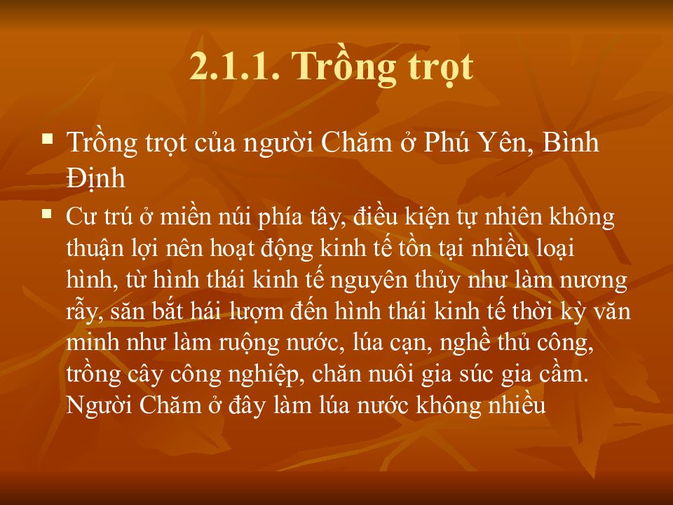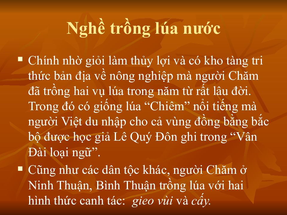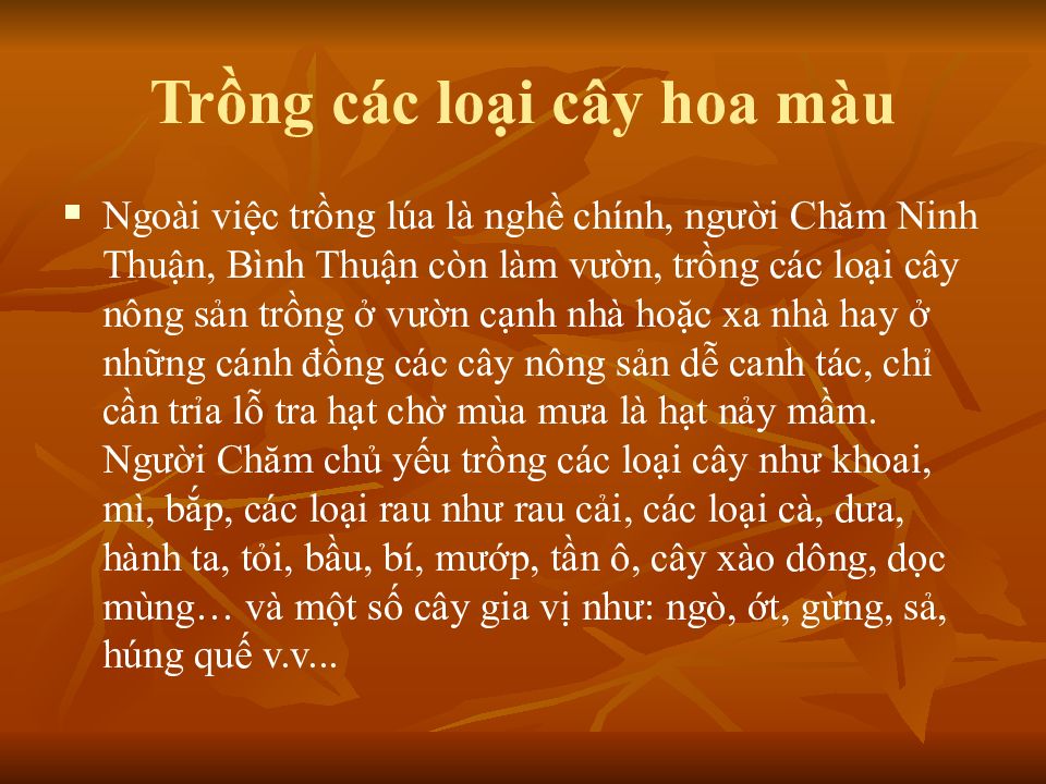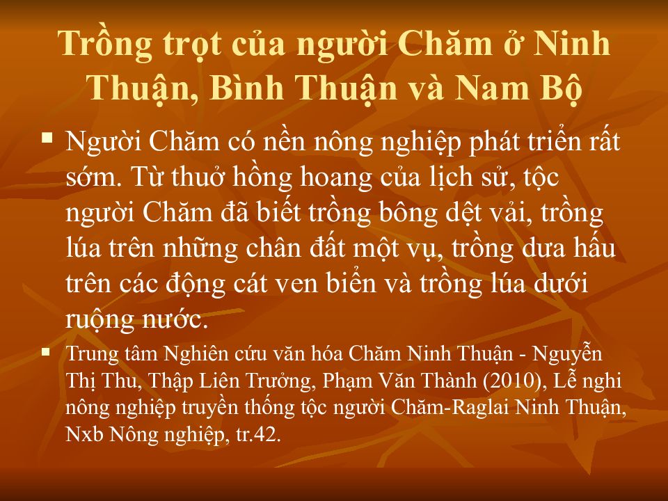 Слайд 6: Trồng trọt của người Chăm ở Ninh Thuận, Bình Thuận và Nam Bộ
