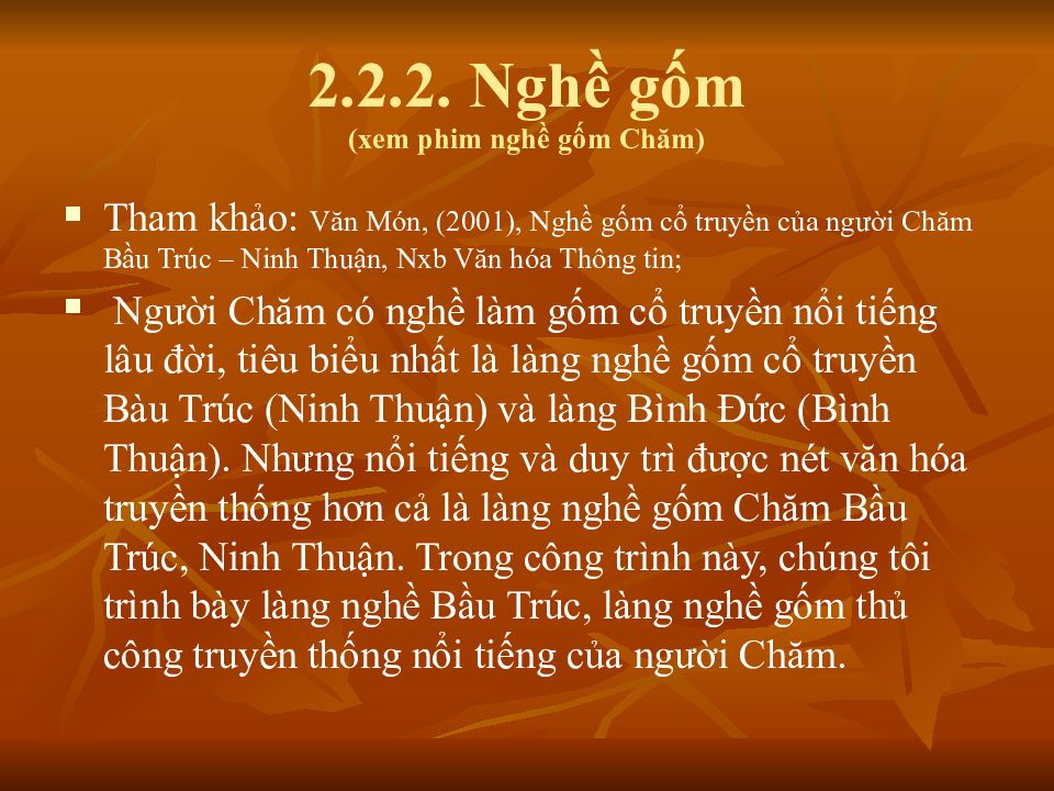 Слайд 31: 2.2.2. Nghề gốm ( xem phim nghề gốm Chăm )