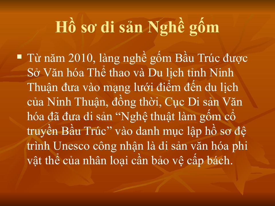 Слайд 44: Hồ sơ di sản Nghề gốm