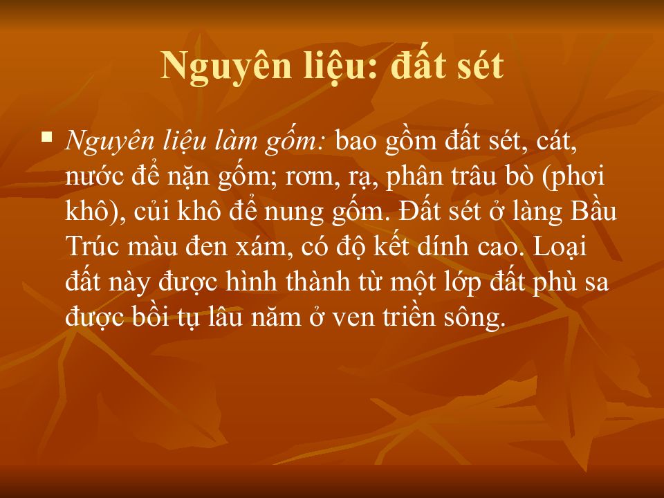 Слайд 33: Nguyên liệu: đất sét