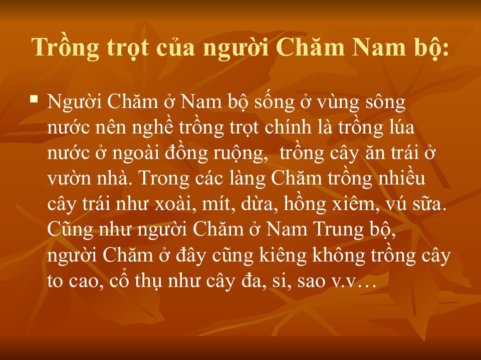 Слайд 12: Trồng trọt của người Chăm Nam bộ :