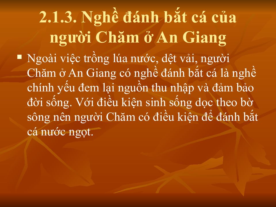 Слайд 17: 2.1.3. Nghề đánh bắt cá của người Chăm ở An Giang