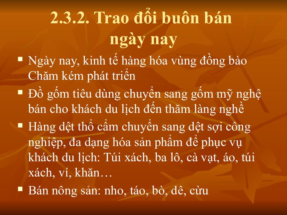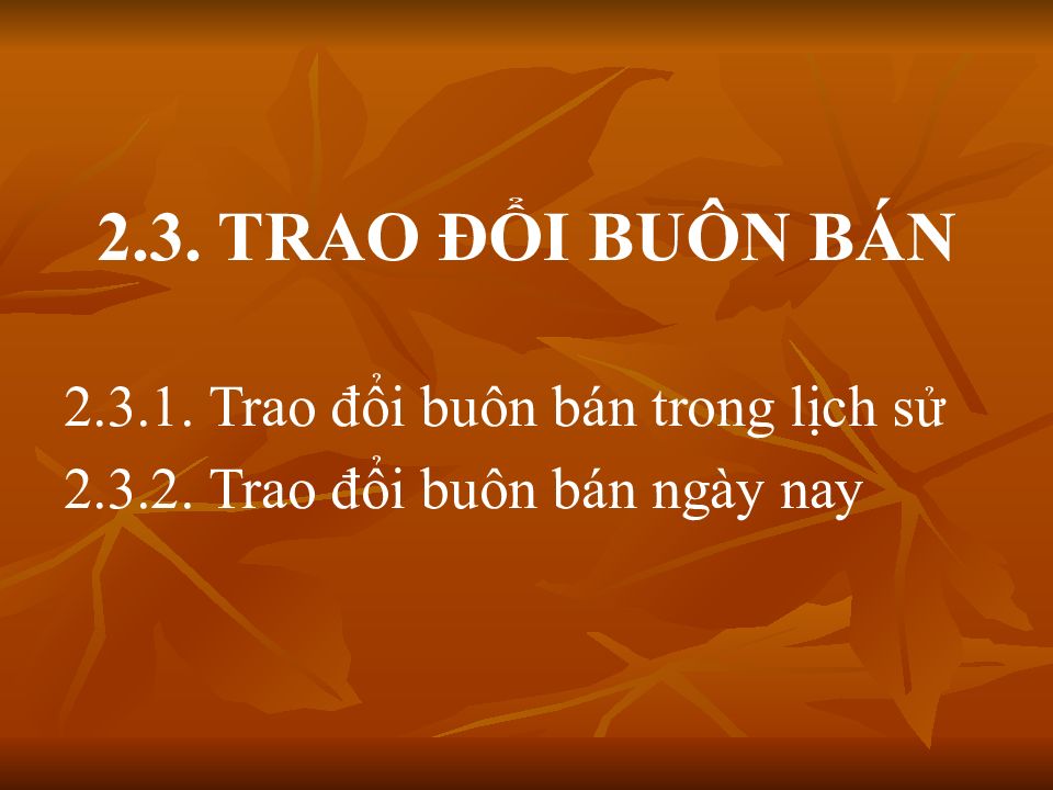 2.3. TRAO ĐỔI BUÔN BÁN 2.3.1. Trao đổi buôn bán trong lịch sử 2.3.2. Trao đổi buôn bán ngày nay