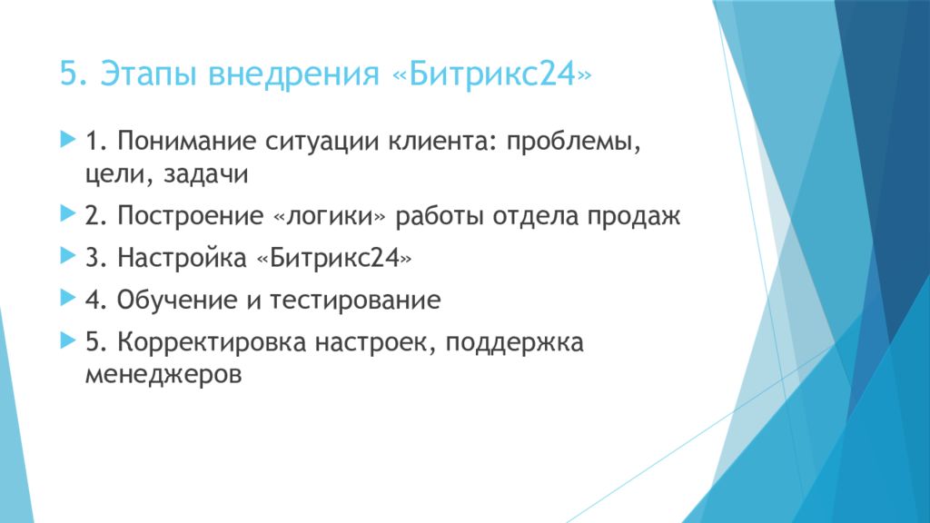 Слайд 14: 5. Этапы внедрения «Битрикс24»