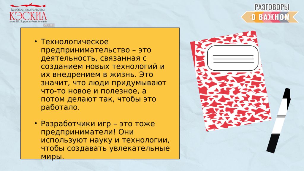 Технологическое предпринимательство – это деятельность, связанная с созданием новых технологий и их внедрением в жизнь. Это значит, что люди придумывают что-то новое и полезное, а потом делают так, чтобы это работало. Разработчики игр – это тоже предприниматели! Они используют науку и технологии, чтобы создавать увлекательные миры.