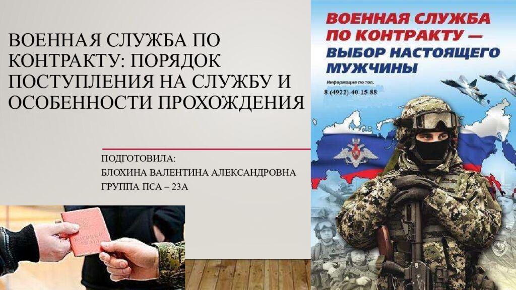Первый слайд презентации: Военная служба по контракту: порядок поступления на службу и особенности прохождения