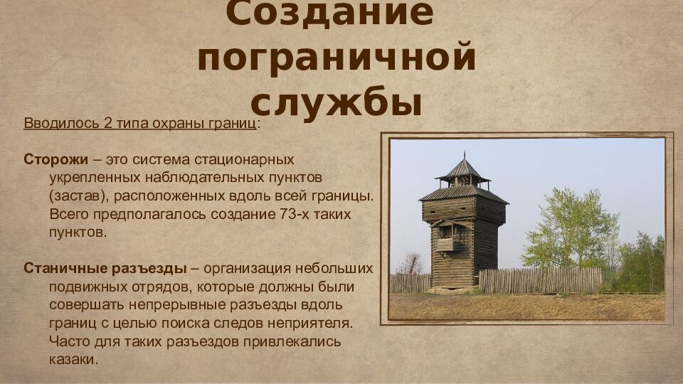 Слайд 6: Создание пограничной службы