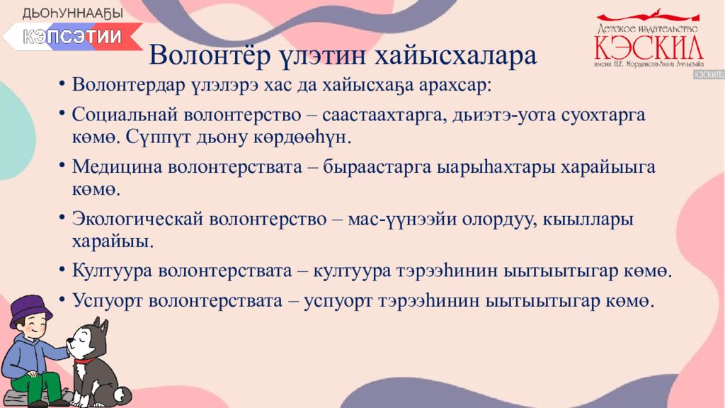 Слайд 5: Волонт ёр үлэтин хайысхалара
