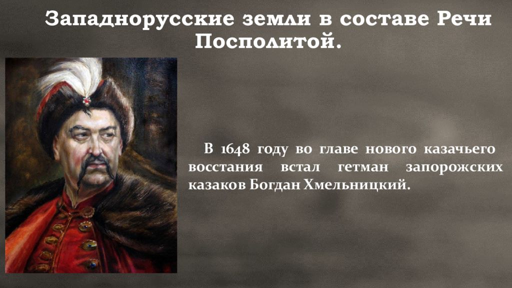 В 1648 году во главе нового казачьего восстания встал гетман запорожских казаков Богдан Хмельницкий.